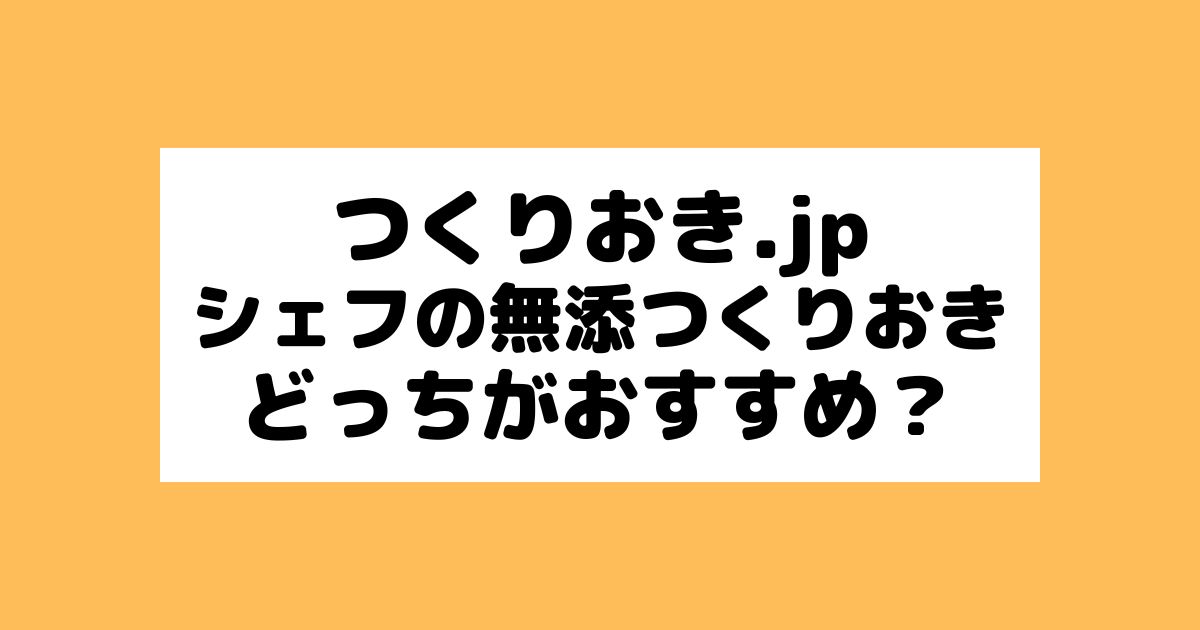 つくりおき.jpとシェフの無添つくりおきを比較した結果、つくりおき.jpをおすすめします。